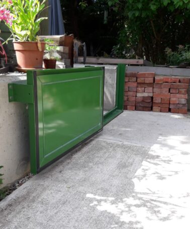 Timber flood gates are best suited to residential driveways or pedestrian openings.