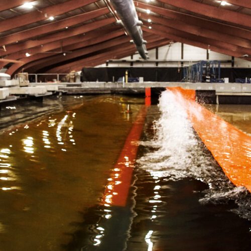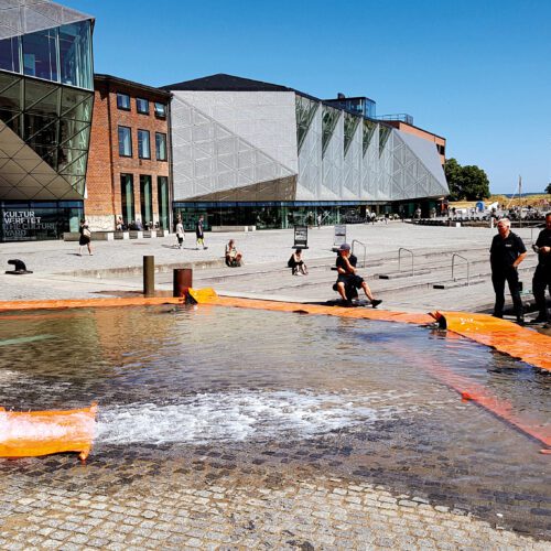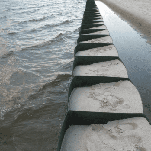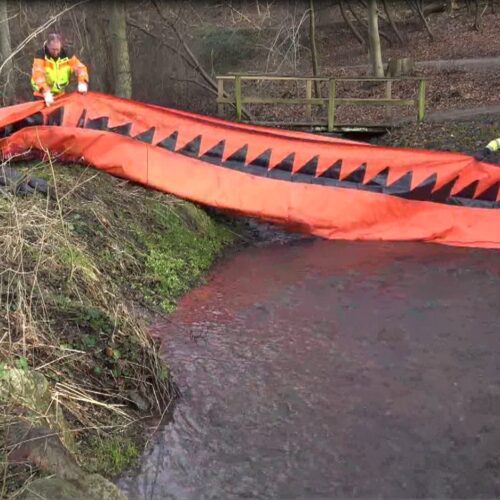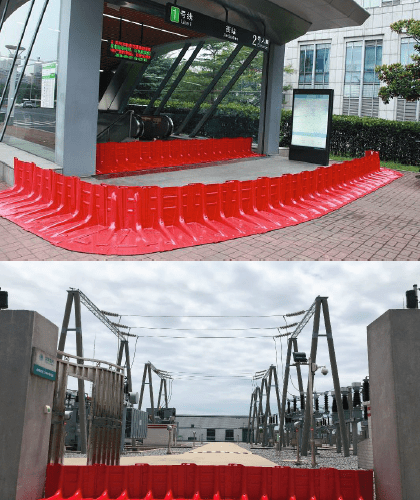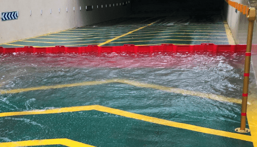 A water-filled dam barrier which is designed for extreme weather and stability. It withstands both dynamic and static environments and is extremely stable.