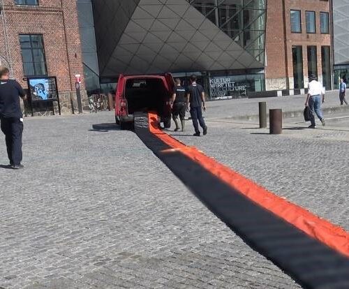 A simple modular system which becomes more stable with higher water pressure. The barrier is very light and easy to deploy in seconds, with minimal storage space required. The system can also be re-used following a flood event.